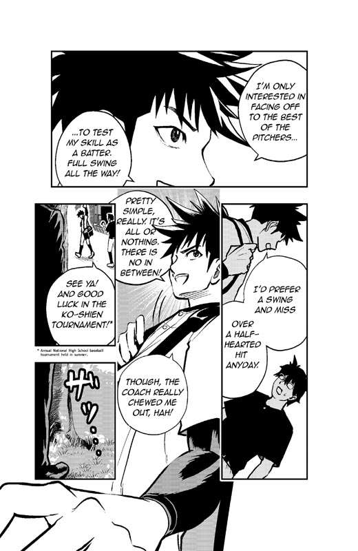 Haku Mizorogi is in his final year of high school. It’s also the season for the annual national high school baseball competition (Ko-shien). Haku’s dream is to become a professional baseballer, and to be a top batter! As such, Haku doesn’t believe in half-heartedness. His competitive drive is to pit himself against the strongest pitchers, so that he can give it his “All or Nothing”!!